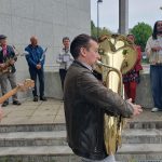 Ce matin mercredi 8 mai , la fanfare jazzlann animait le pot offert à la mairie après la cérémonie commémorative au monument aux morts.